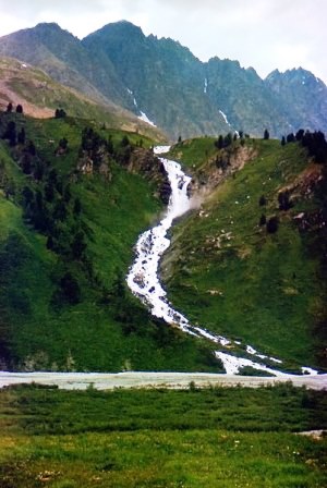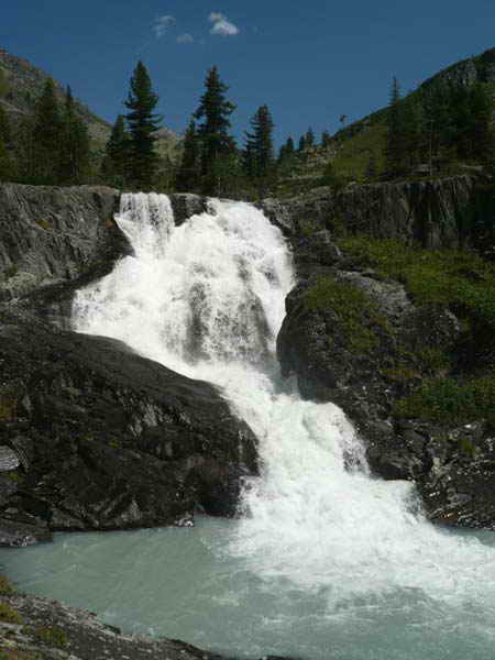 Близ южного склона г. Белуха на р. Рассыпной – притоке р. Катуни – расположен уникальный природный объект, представляющий собой каскад водопадов, общая длина которых составляет 200 метров. Один из водопадов этого каскада – Рассыпной, с высотой падения воды 30 м (возможно 35 м). Это один из