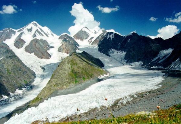 Гора Белуха имеет две вершины в виде неправильных пирамид - Западную (4435 м) и Восточную (4506), а так же «Седло